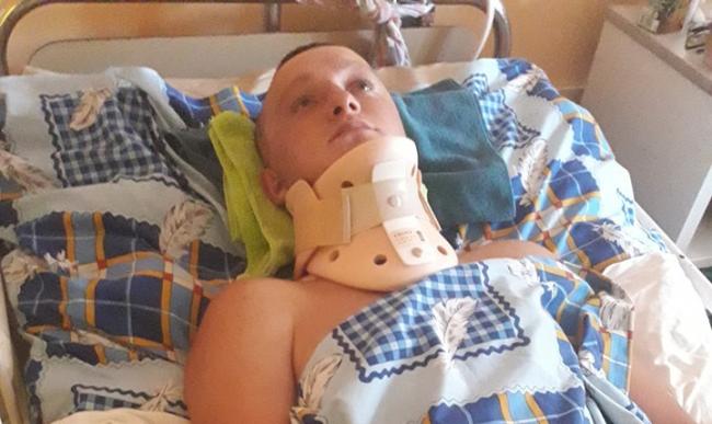 Нещодавно йому поставили імплант. Зараз в нього нерухомі ноги і пальці рук, навіть підняти голови не може.