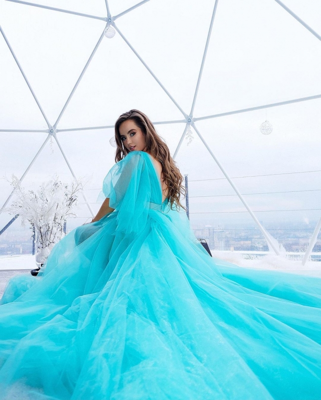 Наразі Аліна подорожує та активно фотографується. Нещодавно вона фотографувалася у пишній фатиновій сукні, в якій вона схожа на принцесу.
