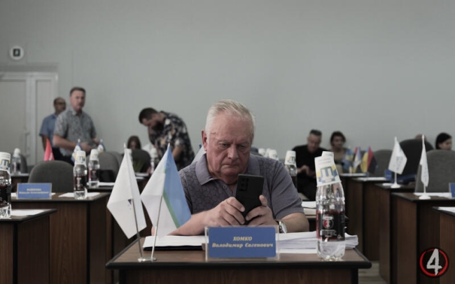 Виявилося, що інцидент трапився кілька годин раніше перед входом у приміщення на вулиці Поштовій. Чоловік у військовій формі стояв біля людей з плакатами, а коли побачив Володимира Хомка, який поспішав на сесію, то намагався поставити йому кілька запитань, завбачливо записавши розмову на телефон.
