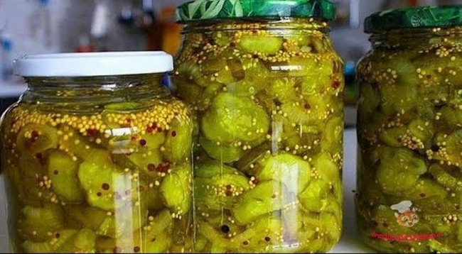 Для маринаду: 200 мл яблучного оцту; 50 мл кип’яченої холодної води; 300 г цукру; 0,5 ч. л. куркуми; 2 ст. л. зернистої гірчиці; 8 горошин духмяного перцю.