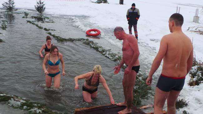 Територію та саме місце для купання охороняли поліцейські та рятувальники. Останні мусили постійно відганяти людей від льоду, товщина якого складала всього-на-всього 8 сантиметрів. Через це було чути, як льодяний покрив озера хрускотів під ногами охочих скупатися. Рівнянам, щоб зігрітися, пропонували гарячий чай, мед та куліш.