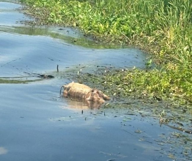Інспектори Поліського округу відреагували на повідомлення з “гарячої лінії”, про забруднення річки Стир на Рівненщині. Учора в гирлі річки поблизу села Вербень Дубенського району виявили тушу свині.