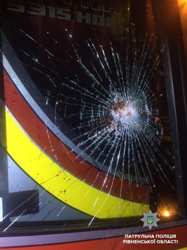 На місці з’ясувалось, що 15 дітей з тренерами повертались із 3-денних змагань з художньої гімнастики в Києві. Під час посадки пасажирів до автобуса підбіг невідомий чоловік та кулаком почав бити скло і корпус автобуса.