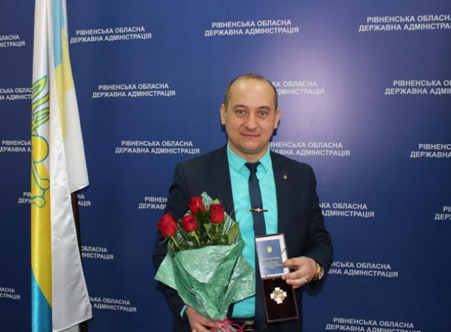 Рівненського «кіборга» за видатні заслуги перед Збройними Силами України відзначив нагрудним знаком «Збережемо честь – здобудемо славу» командувач військ оперативного командування «Захід» генерал-майор Олександр Павлюк.  Відзнаку вручив голова ОДА Олексій Муляренко під час колегії.