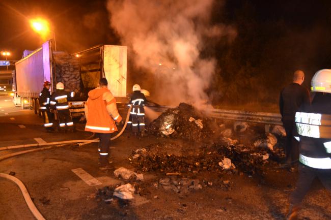 Пожежа виникла у причепі вантажівки, в якій знаходилося деревне вугілля в мішках.
