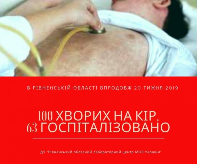 Як повідомляє Рівненський обласний лабораторний центр, найбільше хворих зареєстровано у Березнівському (19 хворих), Рівненському (17), Сарненському (11) районах та м. Рівне (11). Серед захворілих 70 дітей. Впродовж тижня в інфекційні відділення госпіталізовано 63 хворих, з них 38 дітей.