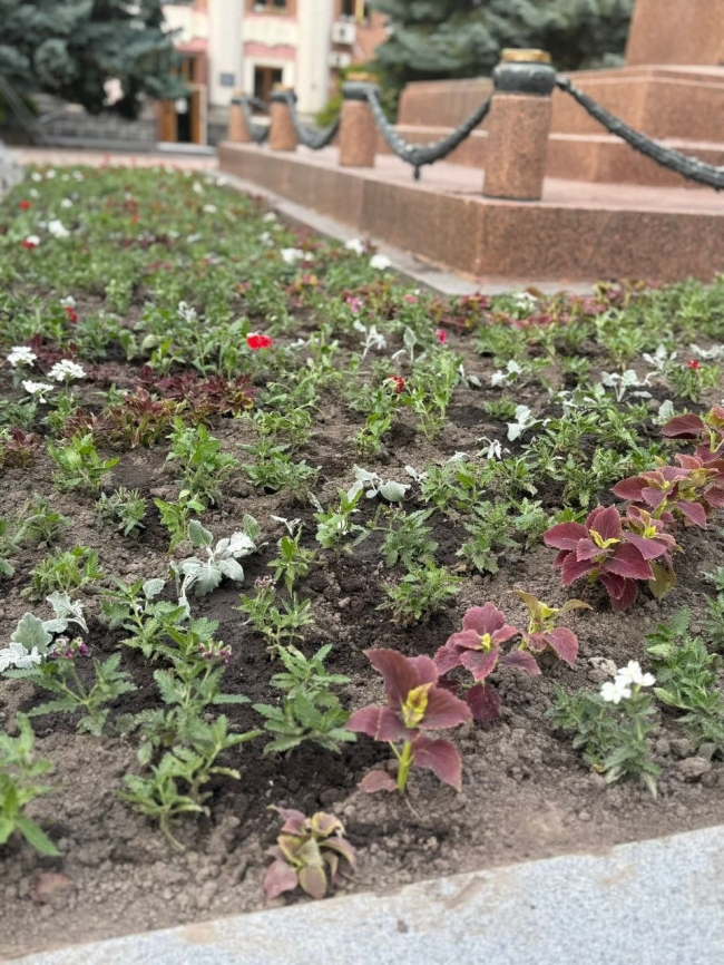 Комунальники висадили квіти на клумбі біля пам’ятника «Загиблим за Україну». Тепер тут посаджені цинерарія, вербена та колеус.