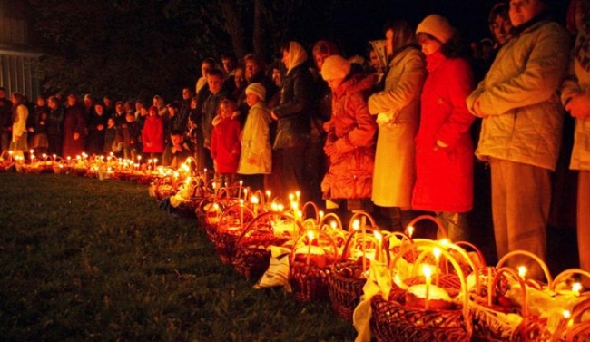 Перше богослужіння можна проводити у нічний час за умови, якщо віряни прийдуть у храм до початку комендантської години і залишатимуться там до її закінчення. Освячення пасхальних кошиків о 5.00.