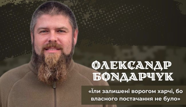«Як командир взводу був на позиціях по 30-40 днів безперервно. У нас була універсальна бригада, на штурми ми також йшли. У посадках і полях тримали позиції, дороги тримали, вихід з села Курдюмівка. Людей на той час у селі вже не було, лише ворог. Було багато всього, про що по телевізору не показують – і постачання, і забезпечення, і відношення. Бувало так, що на нових позиціях забезпечсення практично не було. Ми виживали, як могли: їли те, що залишив ворог, воду з калюж пили, бо нічого не було, ніякого постачання. Наші підійти не могли, боялися», – розповів Олександр Бондарчук.