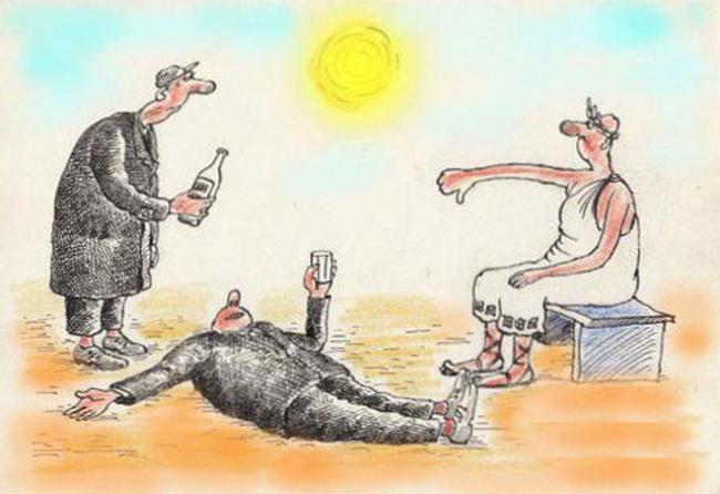 Тут днями до міста мого київського «каллєгу» привозили. Того самого, який за дармових сто грамів готовий написати що завгодно, за двісті — заспівати на усю свою русскоязичную глотку, а за триста — взятися за нерукотворний пам'ятник.