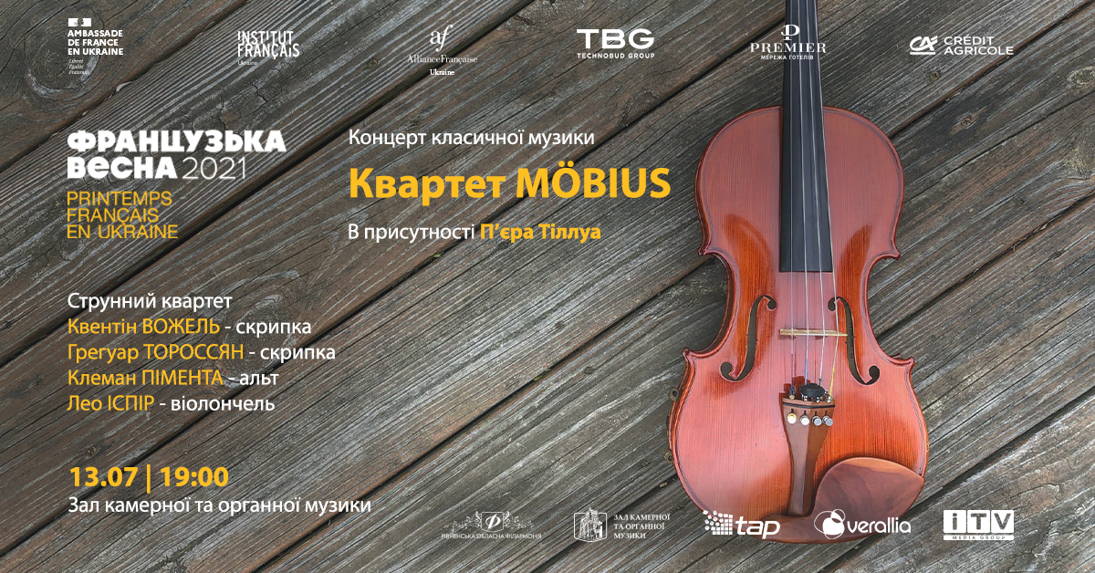 Квартет MÖBIUS і композитор П’єр ТІЛЛУА склали коктейльну програму, де зустрінуться тонкий гумор та серйозність, дух святкувань минулого та сьогодення, бажання танцювати та співати, коротше кажучи, бажання сколихнути публіку, щоб заново навчитися жити разом, сміятися, плакати, танцювати, жити в моменті. Напередодні 14 липня, найбільшого світкування Франції, ми запрошуємо на музичну інтерпретацію знаменитого республіканського триптиху: Свобода, Рівність, Братство!