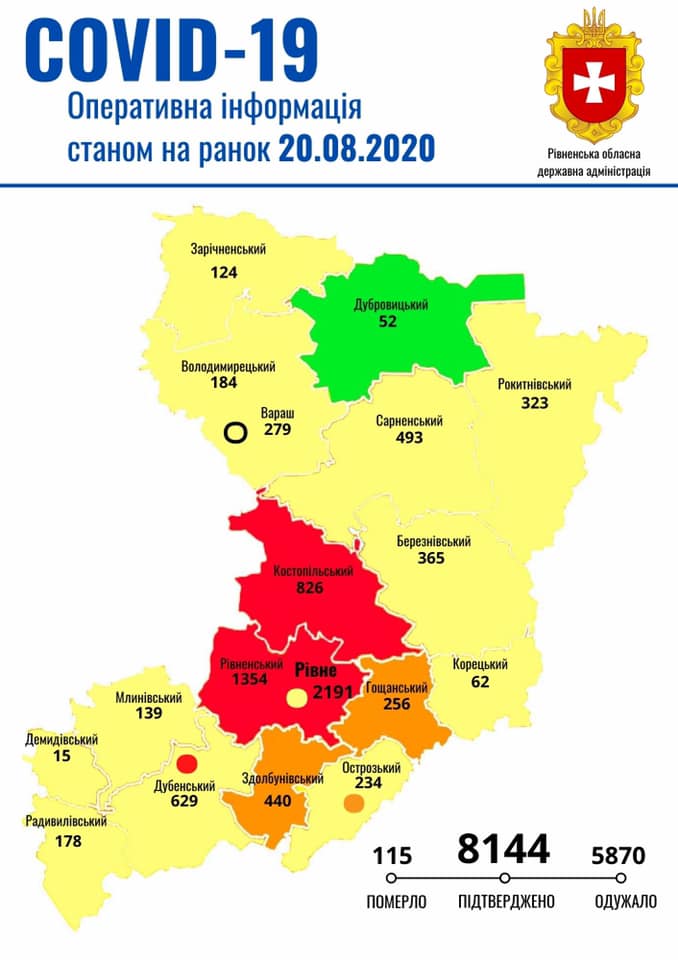 Таким чином в Рівненській області наразі маємо 8144 випадки захворювань на коронавірусну хворобу.