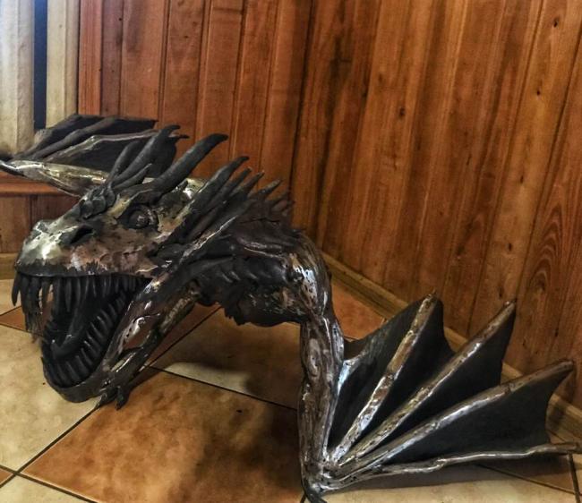 Про це на своїй сторінці у Facebook написала Катерина Дулапчій. Вона пише, що фігура виготовлена з чорного металу – заліза. Дракон вагою майже 40 кілограмів.