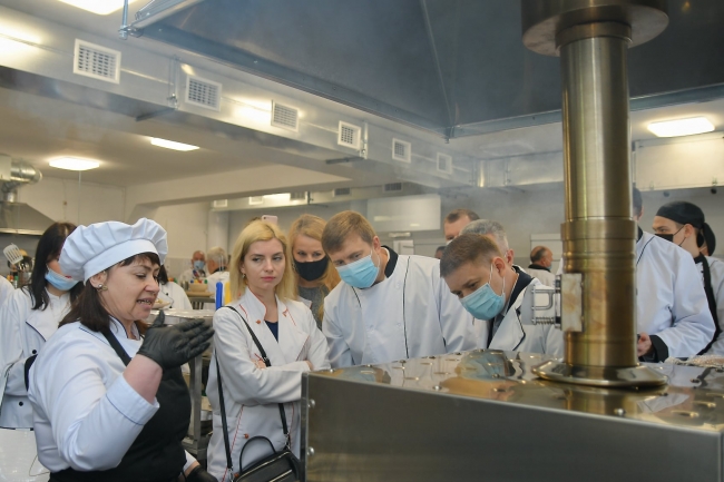 Віталій Коваль разом із міським головою Олександром Третяком уважно слідкували за тим, як майбутні кухарі пекли булочки й готували перепілок.