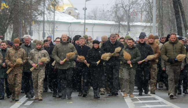 Під час вшанування пам’яті були присутні президент Володимир Зеленський, прем’єр-міністр Денис Шмигаль, очільник Офісу Президента Андрій Єрмак, міністри, посадовці та військові.