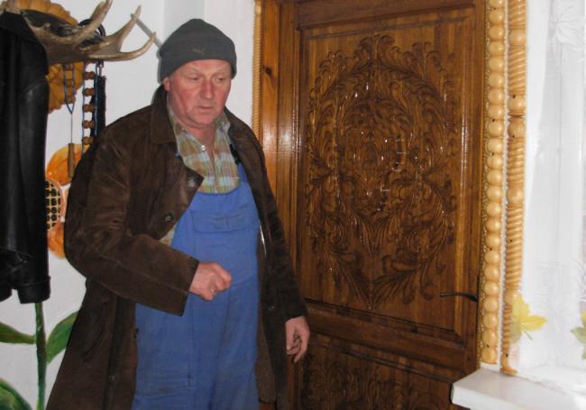 — Можна сказати, що відтоді й займаюся різьбленням, — розповів майстер. — Маю вже, мабуть, із 40 років стажу. Дев’ять з них працював за кордоном, у Прибалтиці. Теж різьбив по дереву, в основному це були меблі, але мав і великі замовлення. Наприклад, якось півроку працював в одного багатого замовника, який захотів оздобити деревом і різьбою увесь свій триповерховий будинок.