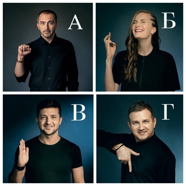 До створення абетки долучилися 33 українських зірки. Вони взяли участь у фотосесії де жестами передають букви українського алфавіту. Серед них: Володимир Зеленський, Сергій Бабкін, Джамала, Катя Осадча, Анатолій Анатоліч, Юрій Горбунов, Дмитро Монатік і Остап Ступка.
