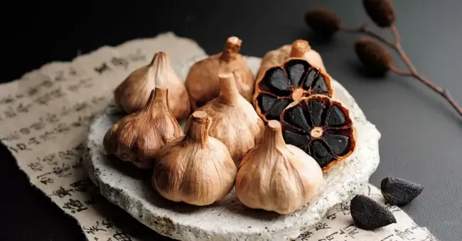 Цікаво, що не якийсь заморський і рідкісний сорт. Чорний часник – це звичайний білий, який впродовж 30-40 (а то й 90) днів витримувався в певних умовах з контрольованою температурою (+60…+80 градусів Цельсія) та вологістю. Відбувається «хімія»: амінокислоти взаємодіють з цукрами, створюючи нові смаки, а сполуки сірки, які відповідають за інтенсивний запах і гострий смак сирого часнику, розщеплюються. Замість цього виробляються меланоїдини, які надають часнику темний колір і оксамитову структуру. Ще одна перевага процесу ферментації полягає в тому, що чорний часник містить менше цукру, ніж його сирий варіант, що полегшує його перетравлення.