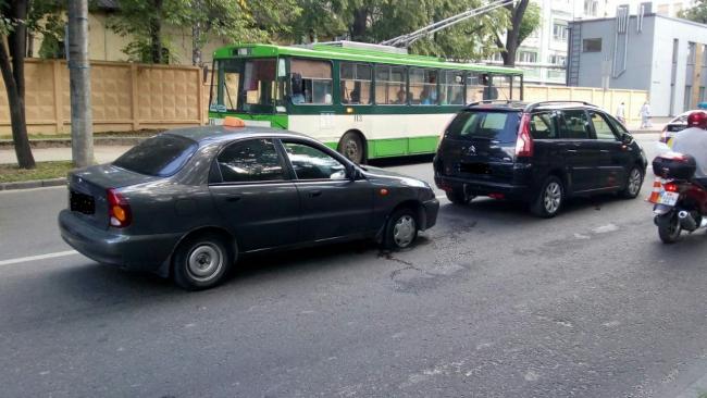 Сьогодні о 12:42 на зупинці, що поблизу Будинку офіцерів у Рівному, сталась автопригода за участю Сітроена Пікассо зі Львова та Ланоса з Рівного.
