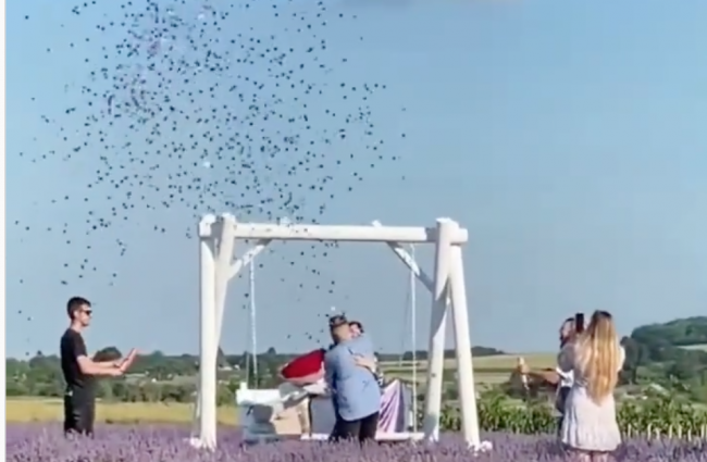 Як видно з відео, яке опублікували на Instagram-сторінці “rivne_1283”, дівчина була на гойдалці, коли до неї підійшов коханий із букетом троянд та обручкою.