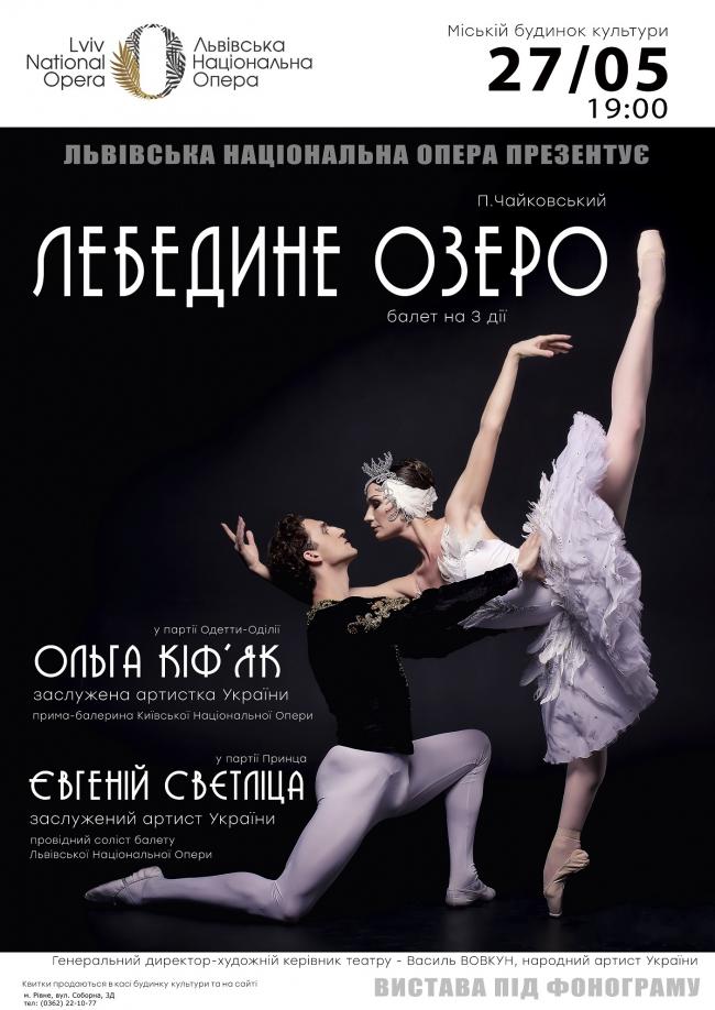 Ця культова історія протягом багатьох років і століть залишається однією з найактуальніших в репертуарі театрів усього світу. В її основі лежить давня німецька казка про молодого принца Зігфріда, полюбив принцесу з сусіднього королівства, Одетт. Але дівчина виявилася зачарована завдяки підступам злого чаклуна Ротбарта, і перетворилася в лебедя — тільки в відображенні місячного світла на воді вона може знову приймати людську подобу. Тільки щира любов, честь і відвага допоможуть принцу перемогти прокляття, щоб закохані знову опинилися разом! Вас чекає чудова європейська постановка у виконанні кращих українських акторів, музикантів і вокалістів.
