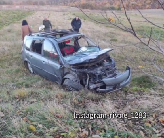 Водій не впорався з керуванням. Автомобіль злетів з дороги у кювет і там декілька разів перевернувся на дах. Легковик добряче потрощило. Ніхто з людей не постраждав.