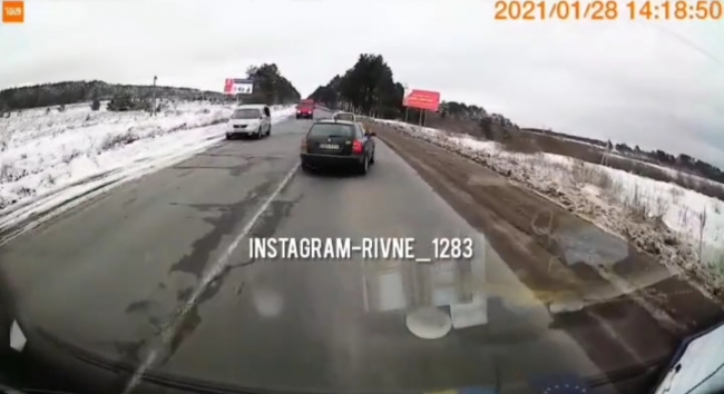 На відео видно, як автомобіль “Skoda Octavia” обганяє автівки, створюючи ризик зіткнення.
