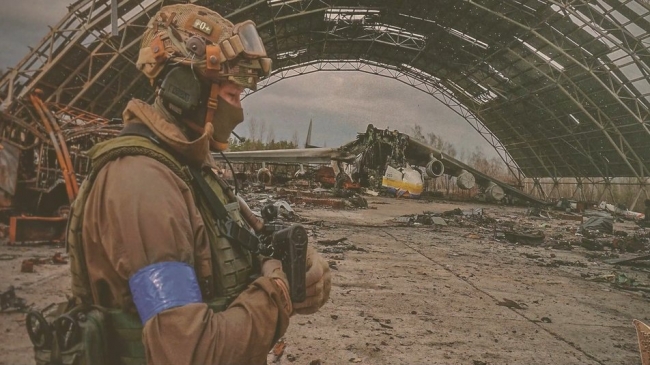 Ця світлина отримала найвищу нагороду у цьогорічному конкурсі. На ній зображений воїн біля знищеного літака “Мрія”.
