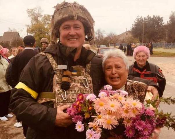 У Херсоні жителі з квітами зустрічають наших воїнів ЗСУ.