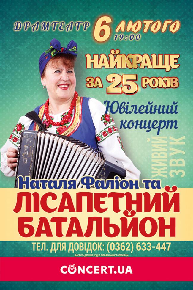 6 лютого у рівненському драмтеатрі виступлять Наталя Фаліон та гурт «Лісапетний Батальйон», переможці телевізійного проекту «Україна має талант».
