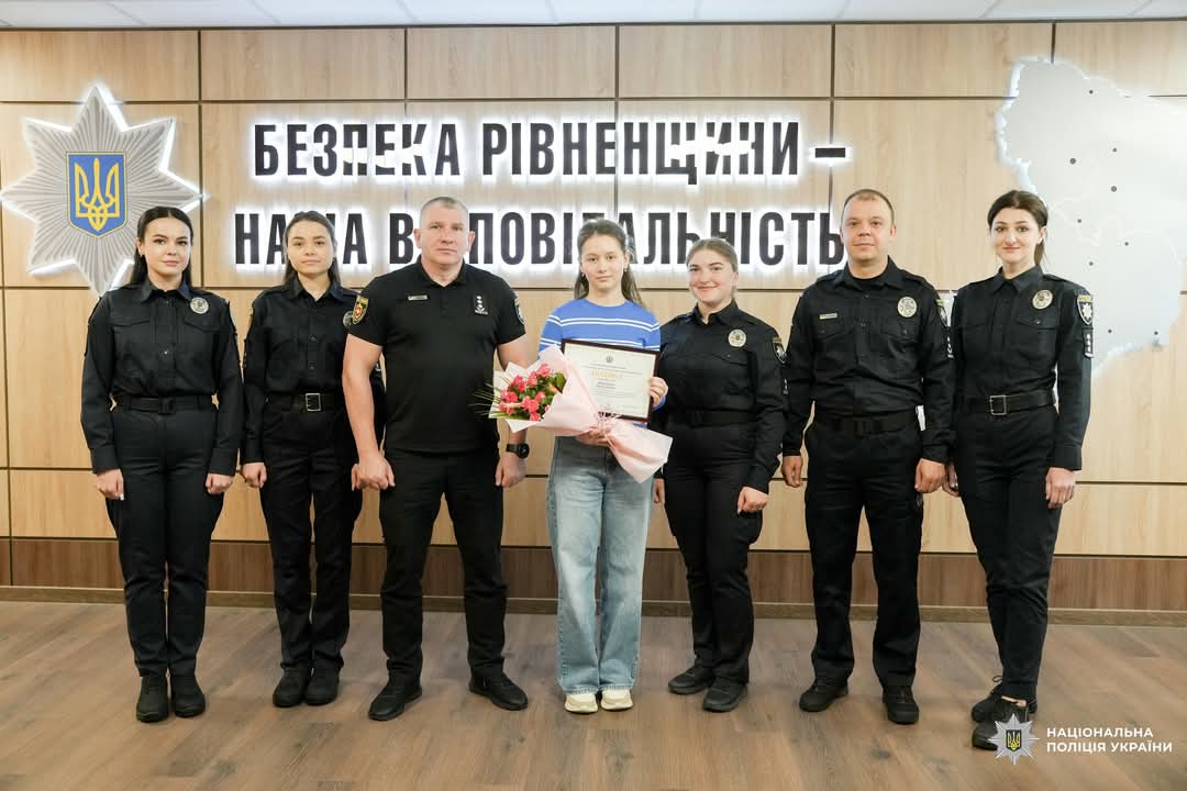 Сьогодні, 25 квітня, керівник поліції Рівненщини Віктор Шанський особисто подякував Ангеліні за свідому та принципову позицію, а мамі – за гідне виховання доньки. Крім того, лист-подяку скерували й до навчального закладу.