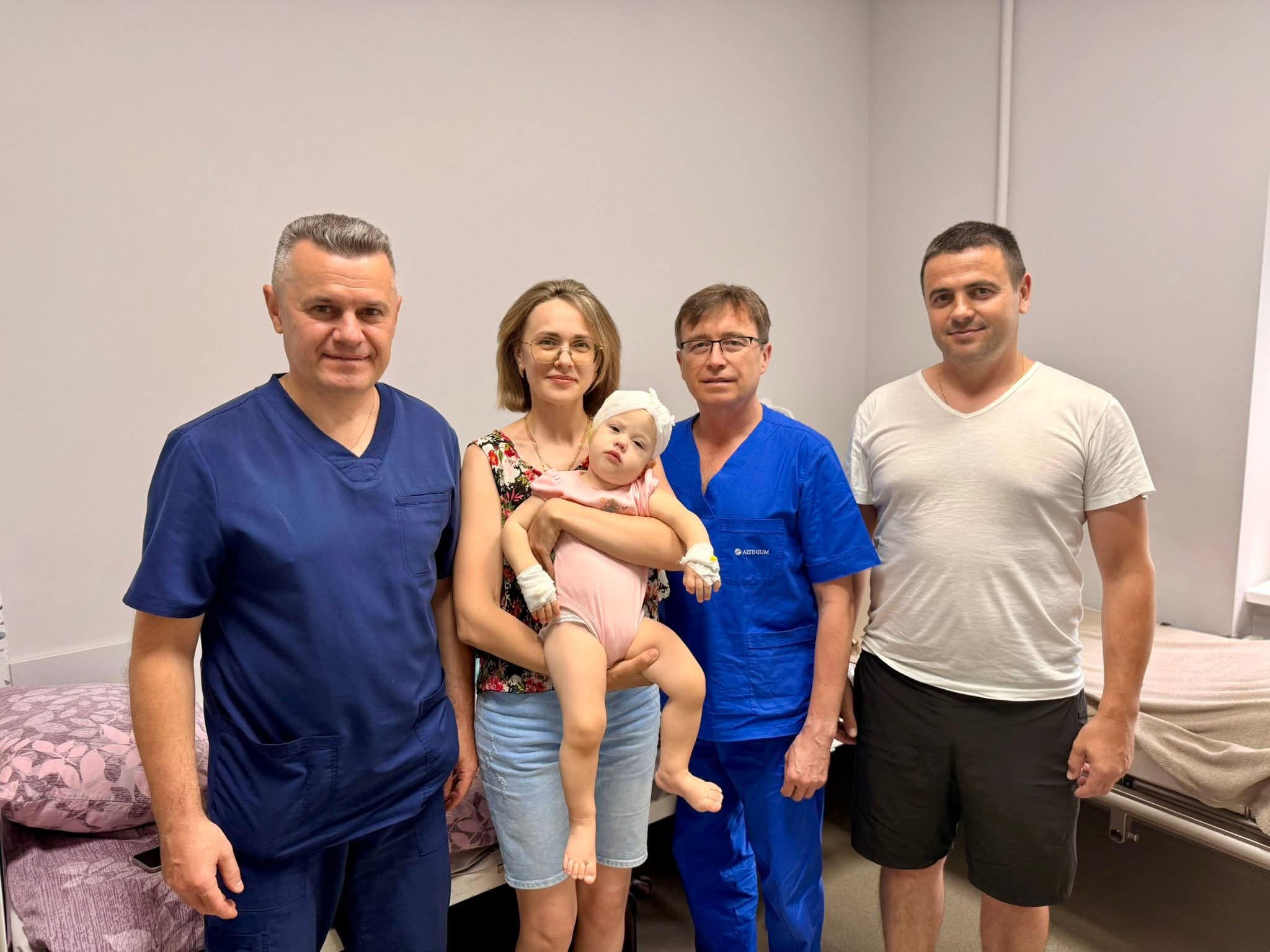Після обстежень, маленьку пацієнтку підготували до операції. До операційної бригади увійшли отоларинголог, керівник клініки Федір Юрочко, анестезіолог Марʼяна Прокопчук та операційна медсестра Надія Гуняк.