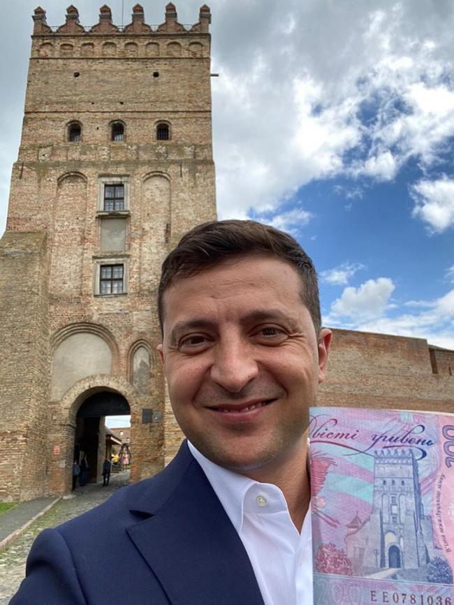 «Схоже? Позаду мене – в’їзна вежа Луцького замку, та сама, що на нашій 200-гривневій купюрі. Завжди мріяв порівняти малюнок з реальністю. У замку відчув дух історії та волинських легенд», – написав Володимир Зеленський у Facebook.