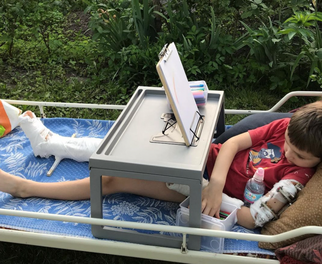 У травні хлопчик потрапив в автомобільну аварію, близько місяця провів у лікарні і досі не може вільно рухатися, проводячи весь час у ліжку. Перелом руки, ноги і черепа, струс мозку, численні забої, складні операції, заборона сідати та вставати – це ще не весь перелік того, що довелося йому пережити.