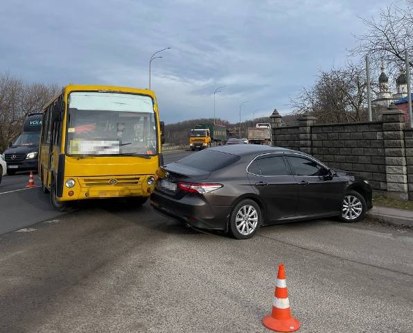 На автомобільній дорозі Київ — Чоп, поблизу села Колоденка, у п'ятницю зіткнулись маршрутка №64 та легковик. На момент зіткнення у маршрутці було двоє пасажирів.