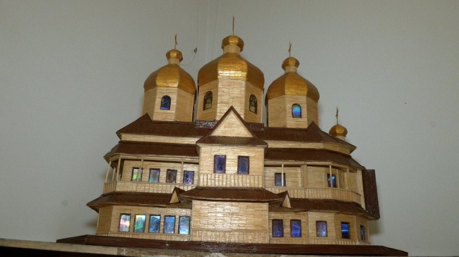 Деякі з мініатюр – копії реальних будівель, як от один з монастирів Кореччини. Картину-діораму майстриня робила приблизно чотири місяці. Для цього використовувала не лише сірники, а і палички для розмішування гарячих напоїв та губку для миття посуду.
