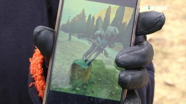 – Я підійшла. Там стояли два чоловічки, я взяла одного за руку, і він почав падати на мене. І як впало на мене, то вдарило в голову, і нога ще. Я впала. Мама підійшла і почала піднімати цю скульптуру, – розповіла рівнянка UA:Рівне.
