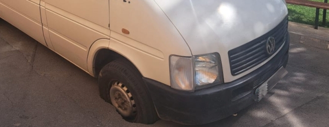 Мікроавтобус влетів колесом в яму. Водію довелося викликати на допомогу рятувальників ДСНС.