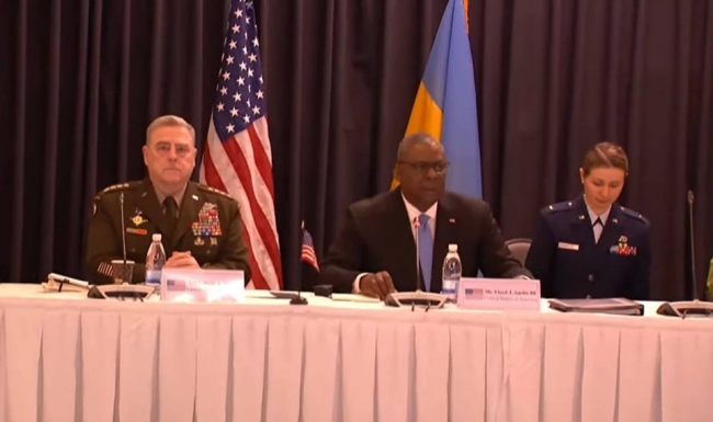 – Це історична зустріч. Ми, представники понад 40 країн, тут, щоб допомогти Україні побороти несправедливу російську агресію, – сказав глава Пентагону на початку зустрічі.