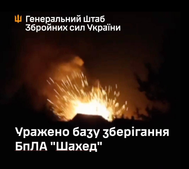 Сьогодні ударна група угруповання сил та засобів Військово-Морських Сил Збройних Сил України у взаємодії з підрозділами Служби безпеки України атакували базу зберігання БпЛА типу “Шахед”.