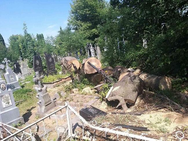 У Дубні дерева, які звалив буревій, потрощили на цвинтарі пам`ятники