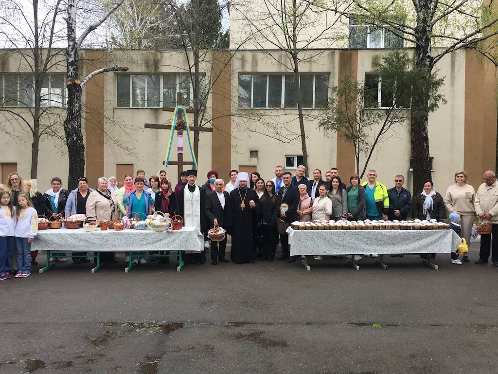 Архіпастир звершив чин освячення великодніх кошиків із пасками, крашанками та іншими стравами, які були підготовлені для пацієнтів, медичного персоналу та поранених воїнів, що перебувають на лікуванні. У своєму слові владика Іларіон передав усім присутнім благословення, слова підтримки та побажання надії й духовної сили у ці важкі часи.