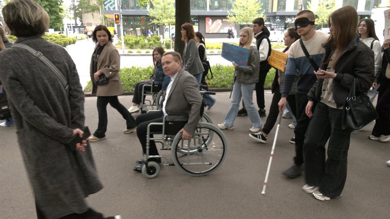 Маршрут ходи в кріслах колісних та з тактильними тростинами — від обласної бібліотеки для молоді до центру міста, повідомляє Суспільне.