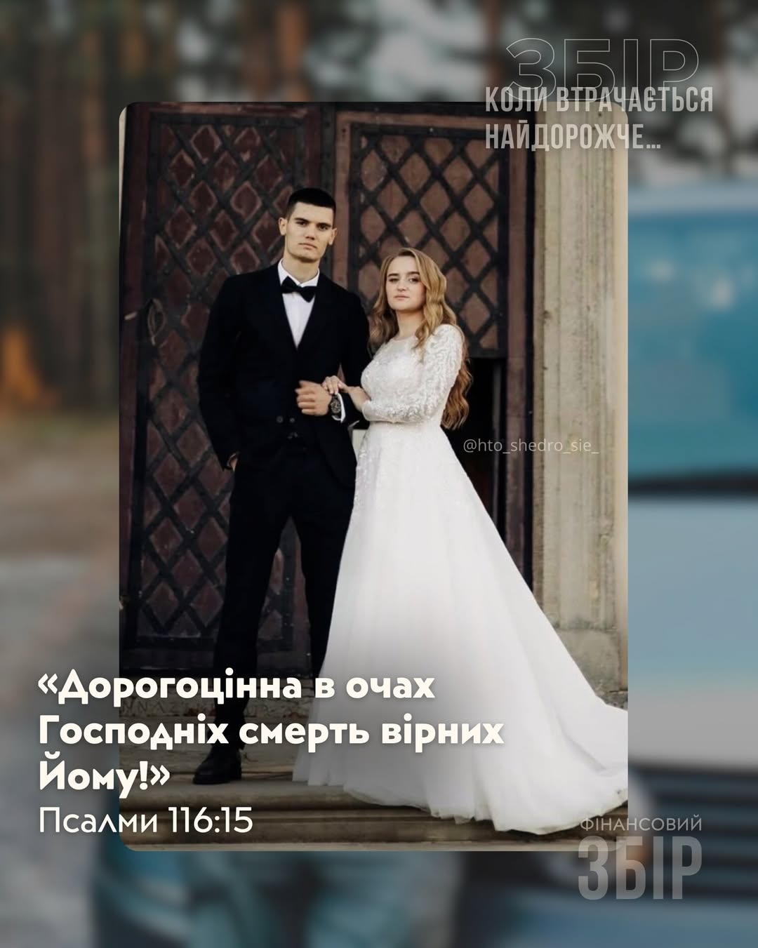 Благодійний фонд «Хто щедро сіє, той щедро жне» повідомляє у Instagram, що хлопець два роки тому одружився з 23-річною Людмилою.