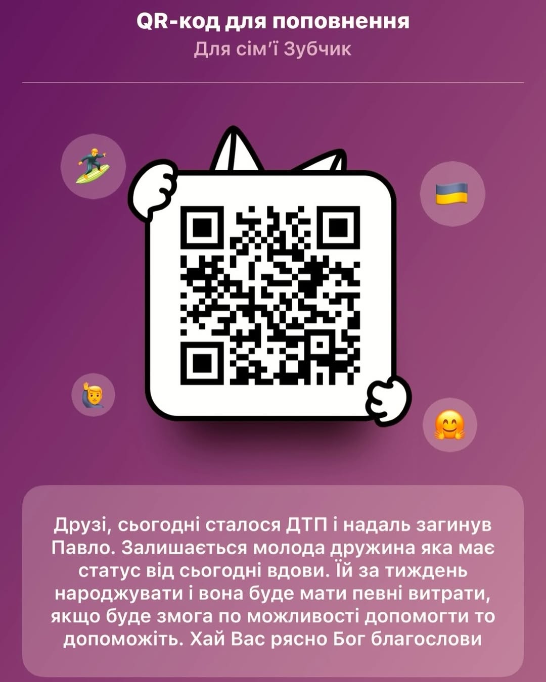 Номер картки На підтримку вдови Павла Зубчика: 4874 1000 2444 5275