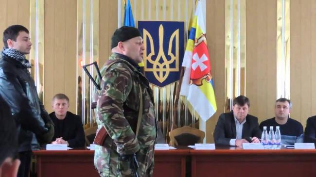 Олександр Музичко, координатор “Правого сектора” на Західній Україні: — “Правий сектор” носив зброю і носитиме до тієї пори, доки вважатиме за потрібне, доки ми захищатимемо народ України. Якщо влада буде вести себе не так, як треба, ми поставимо її на місце. І ніхто нам не вкаже не носити зброю! Не ви її нам давали, не вам її забирати! Хочете забрати в мене мого автомата, пістолета, мої ножі? Спробуйте! Коли закінчиться загроза нашому народу та нашій державності, тоді ми здамо зброю. Думаєте, якщо замість одних свиней біля корита з’явились інші, то щось змінилося? Нічого не змінилося! Я на президії обласної ради вам усім заявляю: у Рівненській області повинні бути заборонені Комуністична партія і Партія регіонів. У нас в області є троє загиблих. Якщо керівники Партії регіонів не скинуться зі своїх скромних мільйонних заощаджень і не куплять хати або квартири для сімей загиблих, “Правий сектор” конфіскує їхні будинки і таки віддасть сім’ям. Має бути створена муніципальна міліція. Не для того ми гинули на барикадах, щоб дехто місцями при владі помінявся. Ми прогнали одних — проженемо й інших. Нині все вирішує той, хто тримає в руках “калашнікова”. Я випущу його з рук, коли у нас всі будуть рівними перед законом і в державі буде правовий порядок. Я все роблю зі своїми хлопцями, щоб в області був лад, щоб нормально функціонували ради. Думаєте, що настав той час, коли можна сказати: “Та хто ти такий, іди у свої Бармаки”? Ні, не буде такого, як під час акції “Україна — без Кучми”, коли одні гнили по тюрмах, а інші при цьому прийшли в парламент.