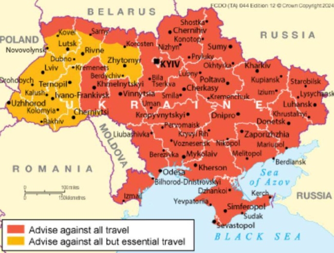 МЗС Британії дозволило поїздки за умови необхідності ще до чотирьох областей – Львівської, Волинської, Рівненської та Житомирської. Області перефарбували з червоного на помаранчевий колір.