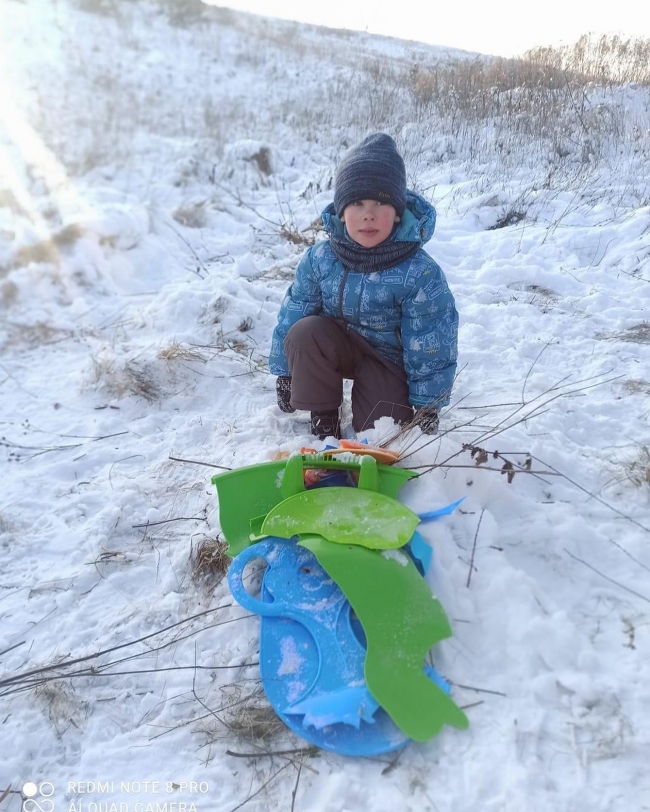 «Бармаковель. Стас, 5 років. За пів години назбирав купу уламків від льодянок, які поїхали в смітник.