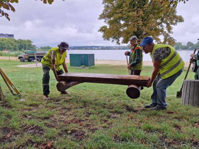 Біля міського пляжу комунальники встановили нові вуличні меблі – дерев’яні лавки.