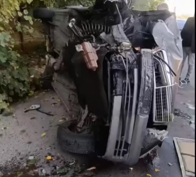 Від удару автомобіль врізався у дерево та перекинувся. Водія «Mercedes» забрала «швидка».